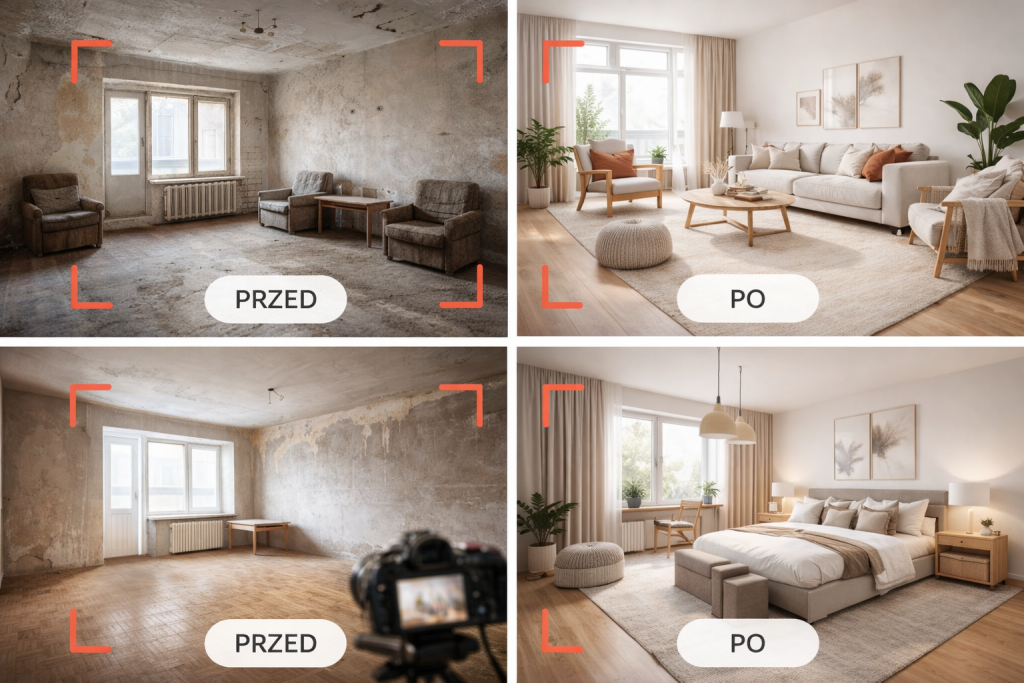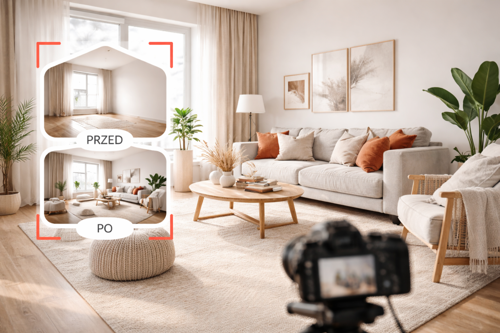 Pracujemy wyłącznie na zdjęciach — nieruchomość nie musi być sprzątana ani przygotowana. Dostarczamy gotowe materiały do ogłoszeń, które realnie zwiększają zainteresowanie ofertą i skracają czas sprzedaży